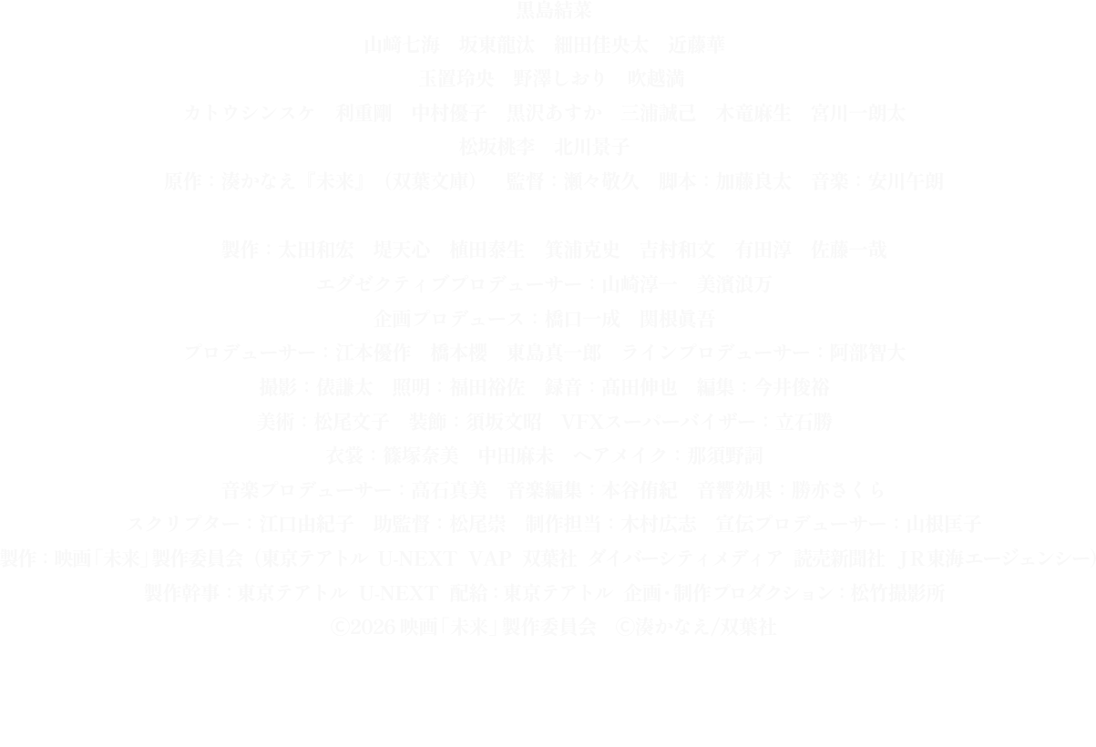 主な出演作に、『十二人の死にたい子どもたち』(19)、『明け方の若者たち』(21)、『鋼の錬金術師』シリーズ、『シルバニアファミリー フレアからのおくりもの』(23/声の出演)、『パレード』『夏目アラタの結婚』(共に24)、『港のひかり』(25)など。